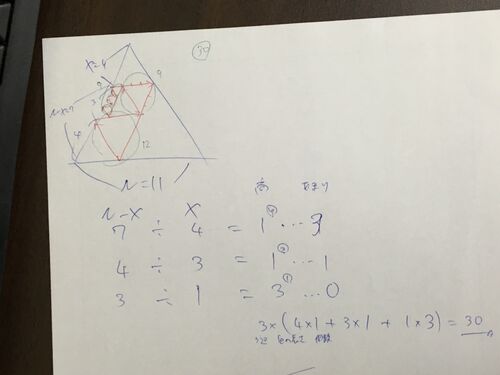 問題タイトルが英語で、世界を感じた。 問題 B: Mysterious Light - AtCoder Grand Contest 001 | AtCoder (問題文の図を参照) ざっくり言うと、正三角形の中で光を反射させたとき、最初の点に戻ってくるまでの軌跡の長さを求めよ、という問題。ただし光は正…